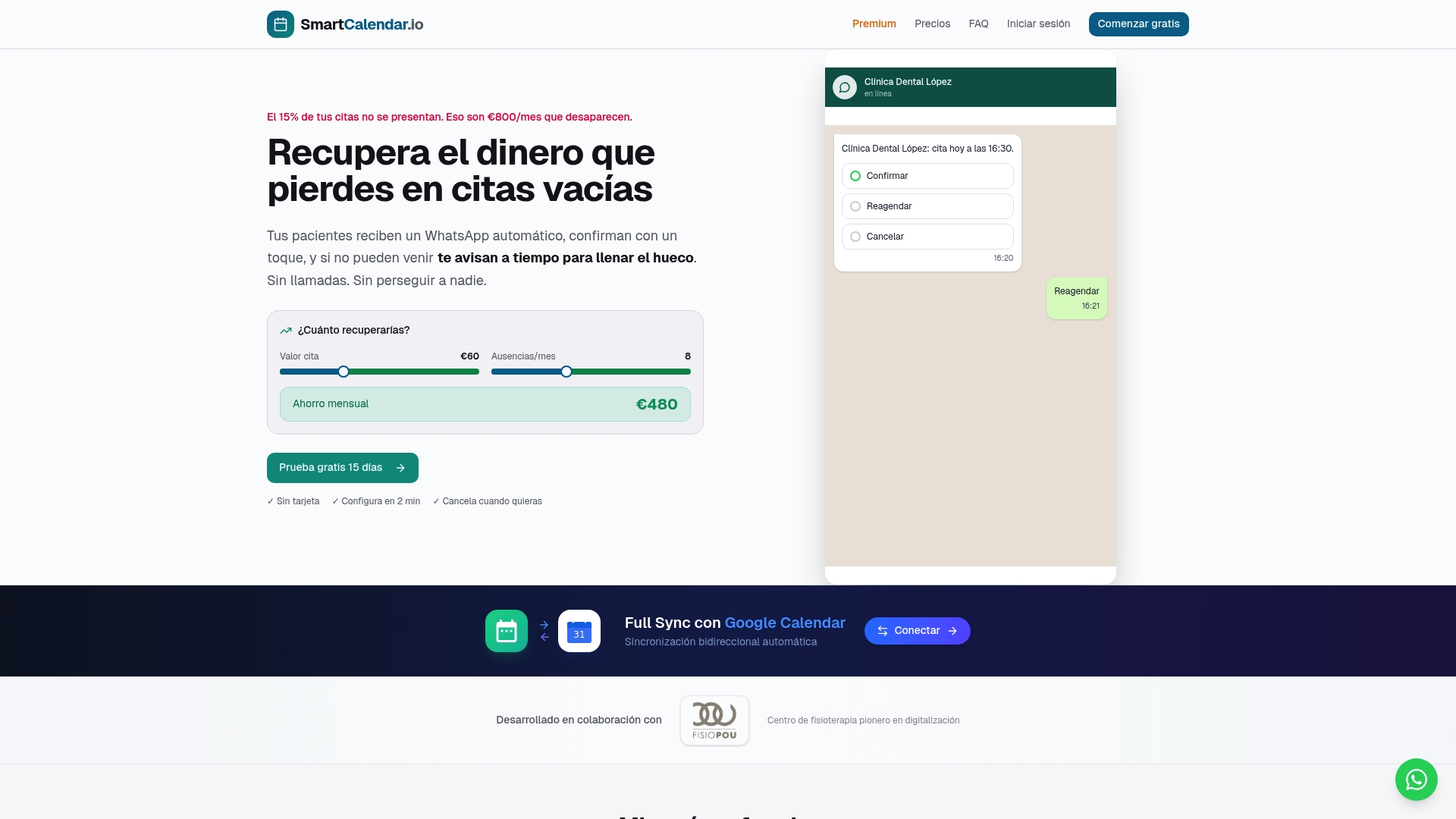 Con SmartCalendar podrás automatizar recordatorios personalizados que aumentan la asistencia y minimizar cancelaciones con el reagendado automático. Además la integración bidireccional con Google Calendar y los análisis predictivos para detectar pacientes con riesgo de inasistencia hacen que la gestión sea mucho más simple y efectiva. Descubre cómo mejorar la experiencia de tus pacientes y optimizar tu agenda en https://smartcalendar.io. ¿Estás listo para maximizar tus ingresos y anunciar un cambio real en tu clínica? No esperes más y prueba la solución que está revolucionando la administración médica.